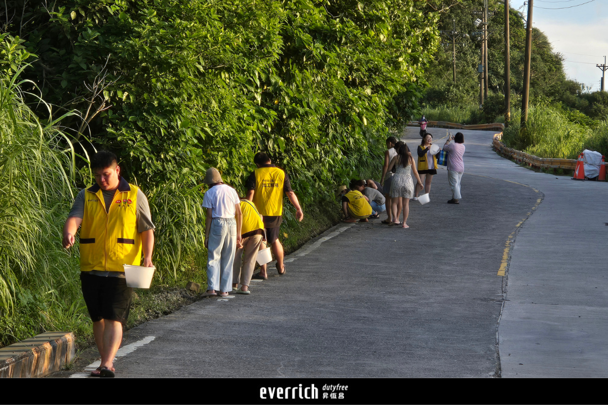 해안 정화 활동에 그치지 않고 생태 보호와 보존으로까지 영역을 확장한 에버리치는, 뤼다오 동부 해안 국가풍경구 관리처가 주관한 “게 지킴이 행사”에도 참여했습니다. 이 활동은 뤼다오 육지게인 ‘애플크랩’의 번식기를 맞아, 산란 중인 암게들이 안전하게 도로를 건너 해변으로 이동해 알을 낳을 수 있도록 돕는 프로그램으로, 로드킬을 예방하고 소중한 섬 생태계를 지켜내는 데 중요한 역할을 했습니다.