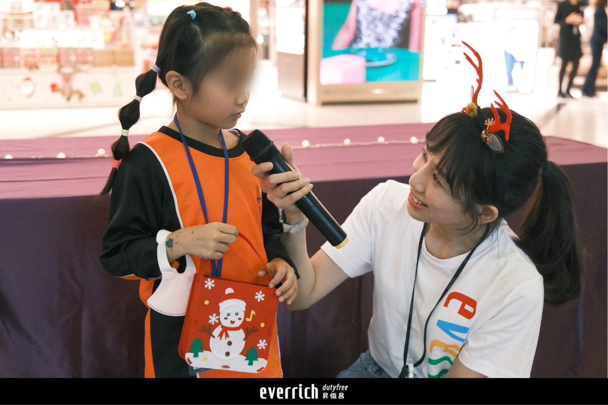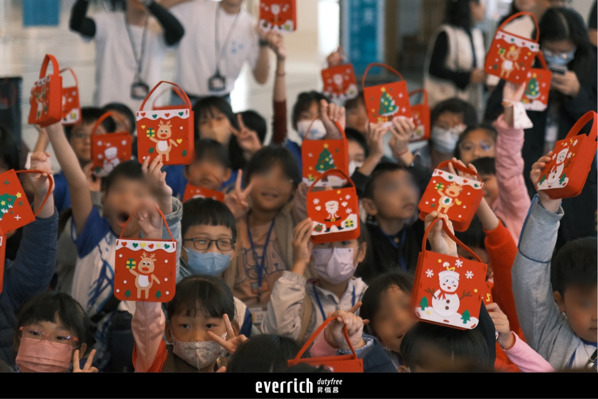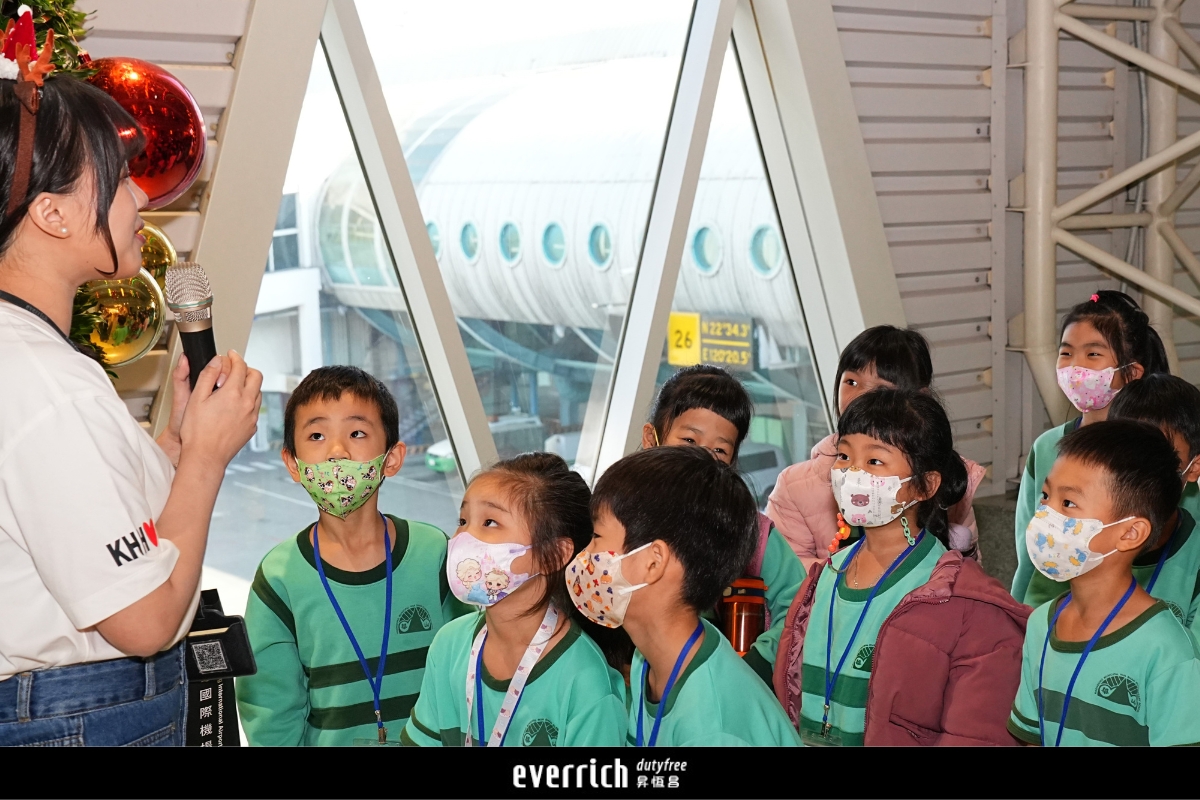 今日活動邀請受獎學童進入機場參觀特色候機室及各項機場公共設施,許多首次踏入國門的學童一路驚喜連連,基金會也準備麋鹿、聖誕老人等聖誕元素的造型小提袋,讓孩童發揮創意,貼上聖誕貼紙,用小提袋裝滿糖果;來自高雄在地獲獎無數的阿卡貝拉樂團「Fantasia」也在現場帶來溫暖的聖誕組曲,還有魔術師帶來聖誕魔術show,讓孩子留下專屬的聖誕回憶。