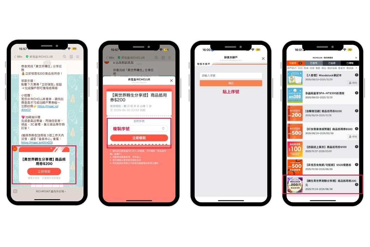 完成測驗並註冊RICHCLUB後,抽獎券3個工作天內自動匯到會員中心【酬賓券】:https://maac.io/4XnG3