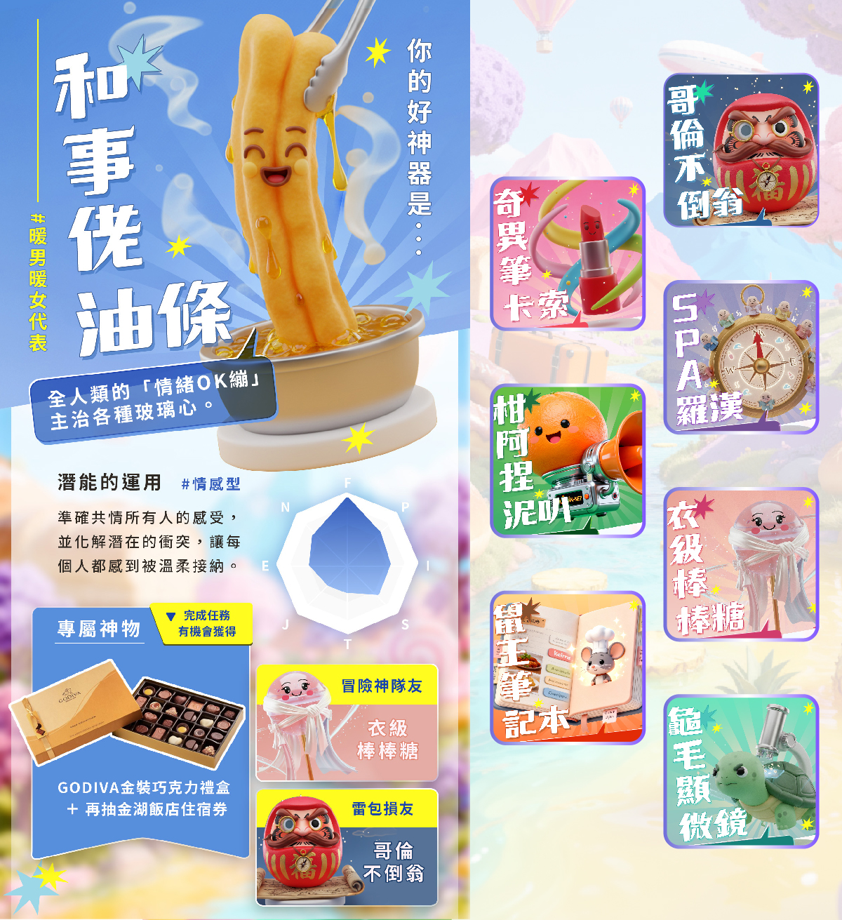 親愛的冒險者,你召喚出的是——拿到就會人人好的「和事佬油條」?擅長找秘境的「SPA羅漢」?絕不放過任何異世界美食的「鼠王筆記本」?還是每一步都要100%精準的「龜毛顯微鏡」?