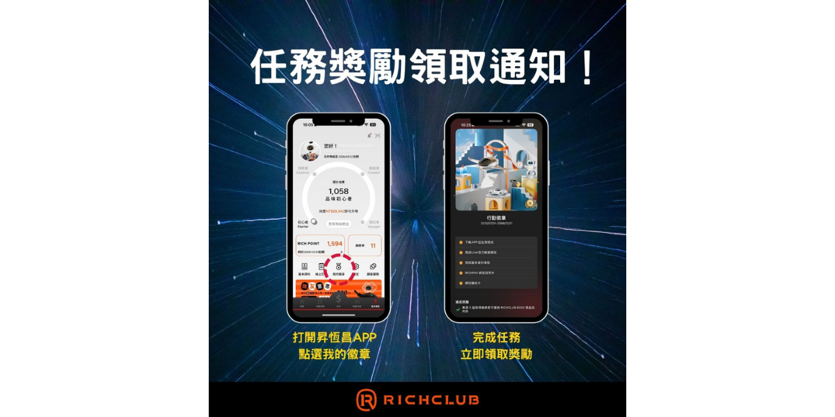 親愛的 RICH FRIEND,為提醒您把今年的努力完整收下,以下為 「已破關待領獎勵」 與 「任務未完成」 的兩項重要通知,請務必於期限內完成操作,以免權益受影響。