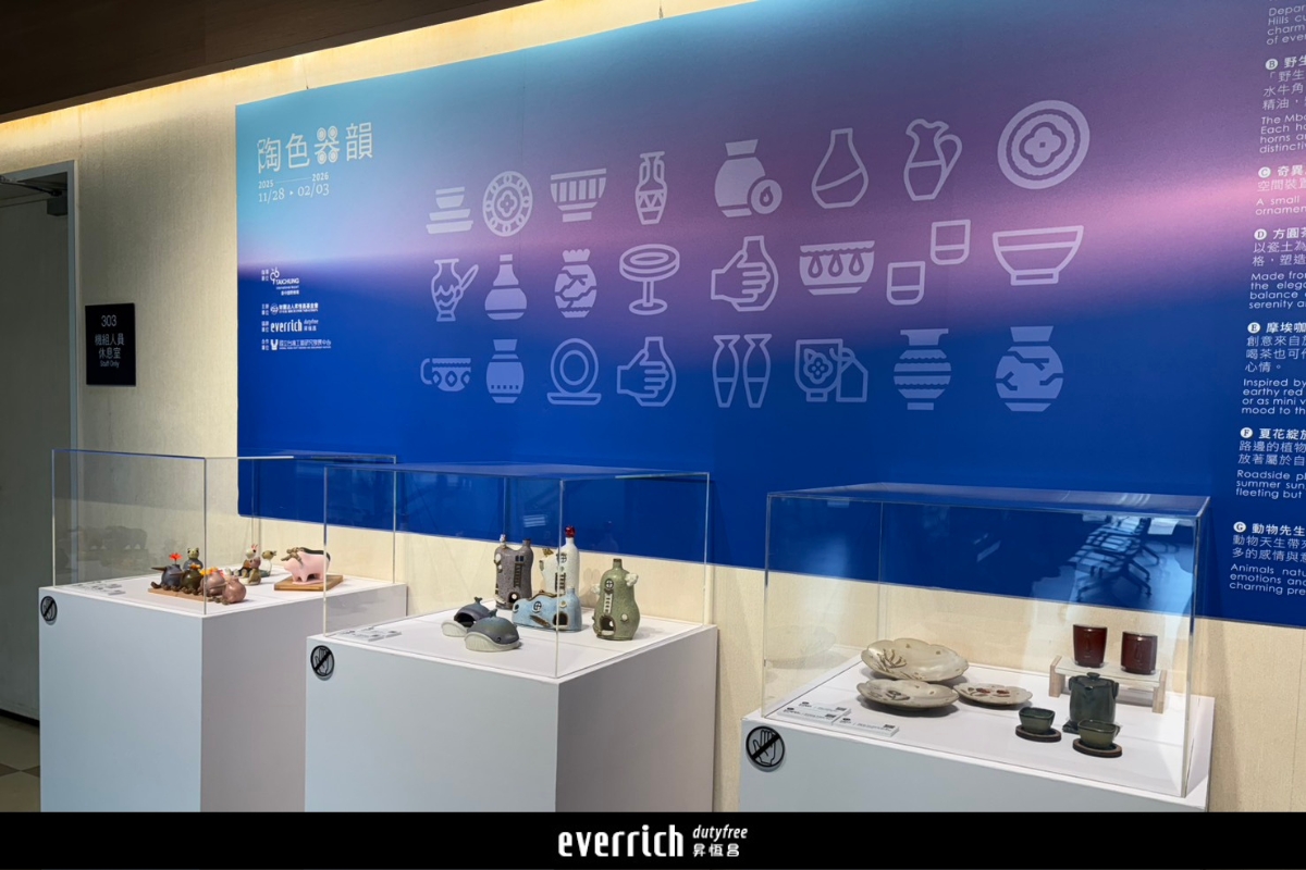 「陶色器韻」以「陶土」為主題,匯聚在地工藝師的創作,呈現陶藝在生活中的多樣樣貌。陶土是大地的贈禮,經過巧手和火候的淬鍊,變成溫潤實用的器物,不只是用品,更是文化的傳承。本次展品展現大地紋理的在地創作,也有療癒人心的作品。不僅彰顯「Made in Taiwan」的創意能量,更從作品感受台中大肚山深厚的文化底蘊,為旅程增添一抹工藝美學。