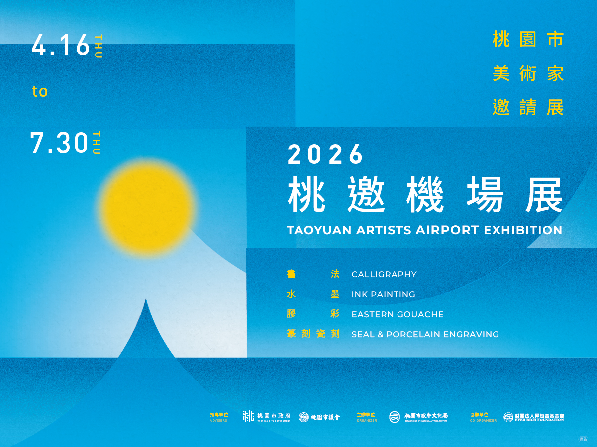 「桃園市美術家招待展」は桃園市政府文化局が長年開催してきた重要な展覧会で、都市の美的エネルギーを蓄積し続けてきました。本展のメイン展は、3月20日から4月12日まで文化局全館で展示が行われました。その中から精選された作品27点(水墨6点、膠彩5点、書道10点、篆刻・刻磁6点)を、4月16日から7月30日まで、桃園国際空港第1ターミナルのAエリア通路と、A9およびB7アートギャラリーにて展示し、東洋の素材で空港の空間を詩的に演出します。