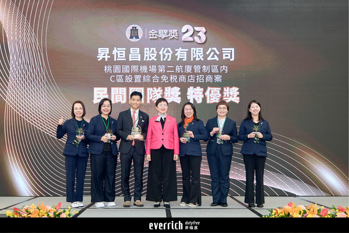 에버리치 면세점이 수많은 난관을 극복하고 “타오위안국제공항 제2터미널 C구역 종합 면세점 설립 민자유치 프로젝트”(이하 “이번 프로젝트”)를 성공적으로 완수했습니다. 본 사업으로 타오위안국제공항의 국가 관문 이미지 제고와 지역 활성화 지원에 대한 공로를 크게 인정받아, 대만 민관협력의 오스카상으로 여겨지는 재정부 주관 “금벽상” 특우수상을 수상했습니다. 에버리치 면세점은 수많은 수상 기업 중 유일하게 특우수상을 수상한 팀일 뿐 아니라, 공공복지상을 수상한 유일한 기업이기도 합니다. 이로써 에버리치 면세점은 네 번째 금벽상 특우수상을 수상했으며, 민간 참여 공공 건설 분야에서 에버리치 면세점의 모범적 역할을 다시 한번 입증했습니다.