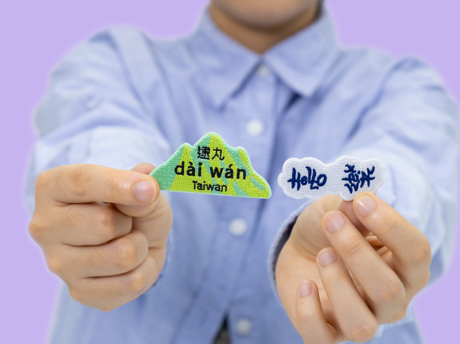 Version B “dài wán” Patch: Inspired by the silhouette of Taiwan’s tallest peak, Yushan, this patch blends “dài wán,” the Taiwanese Hokkien word for Taiwan, with the English word “Taiwan,” celebrating linguistic diversity and Taiwan’s geography.