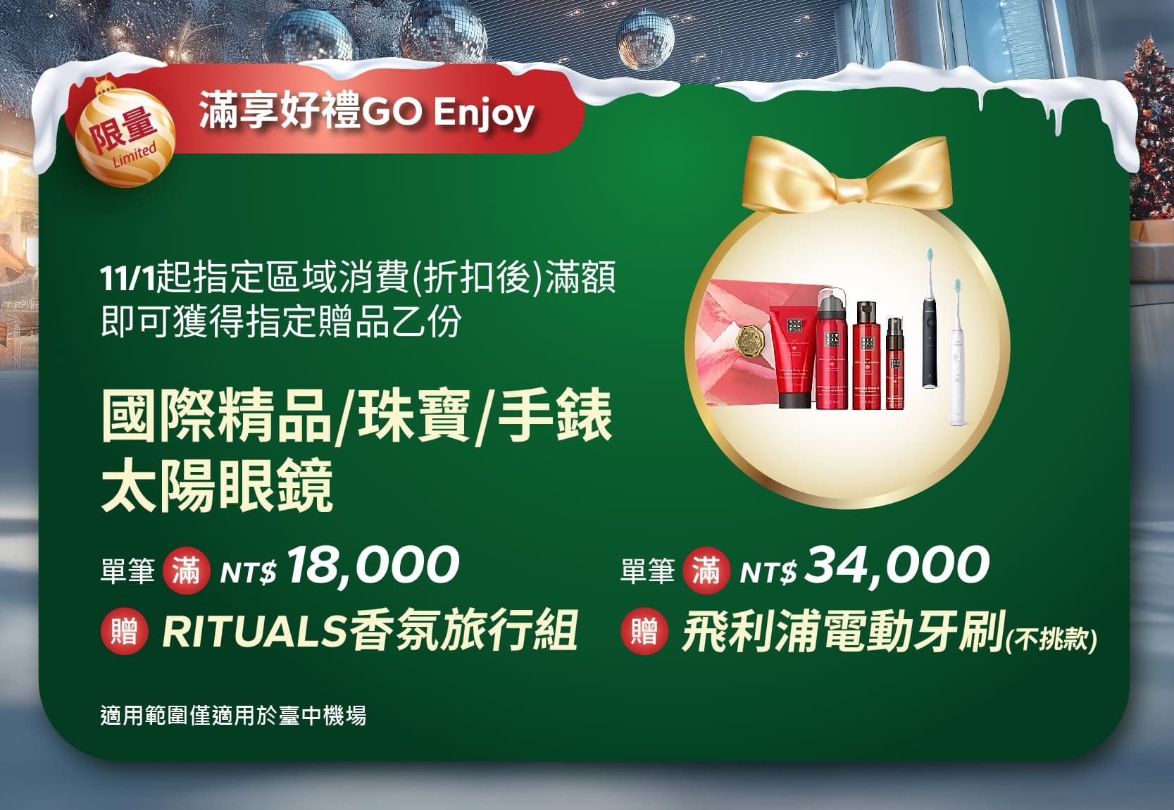 - 單筆NT$滿18,000 贈 RITUALS香氛旅行組