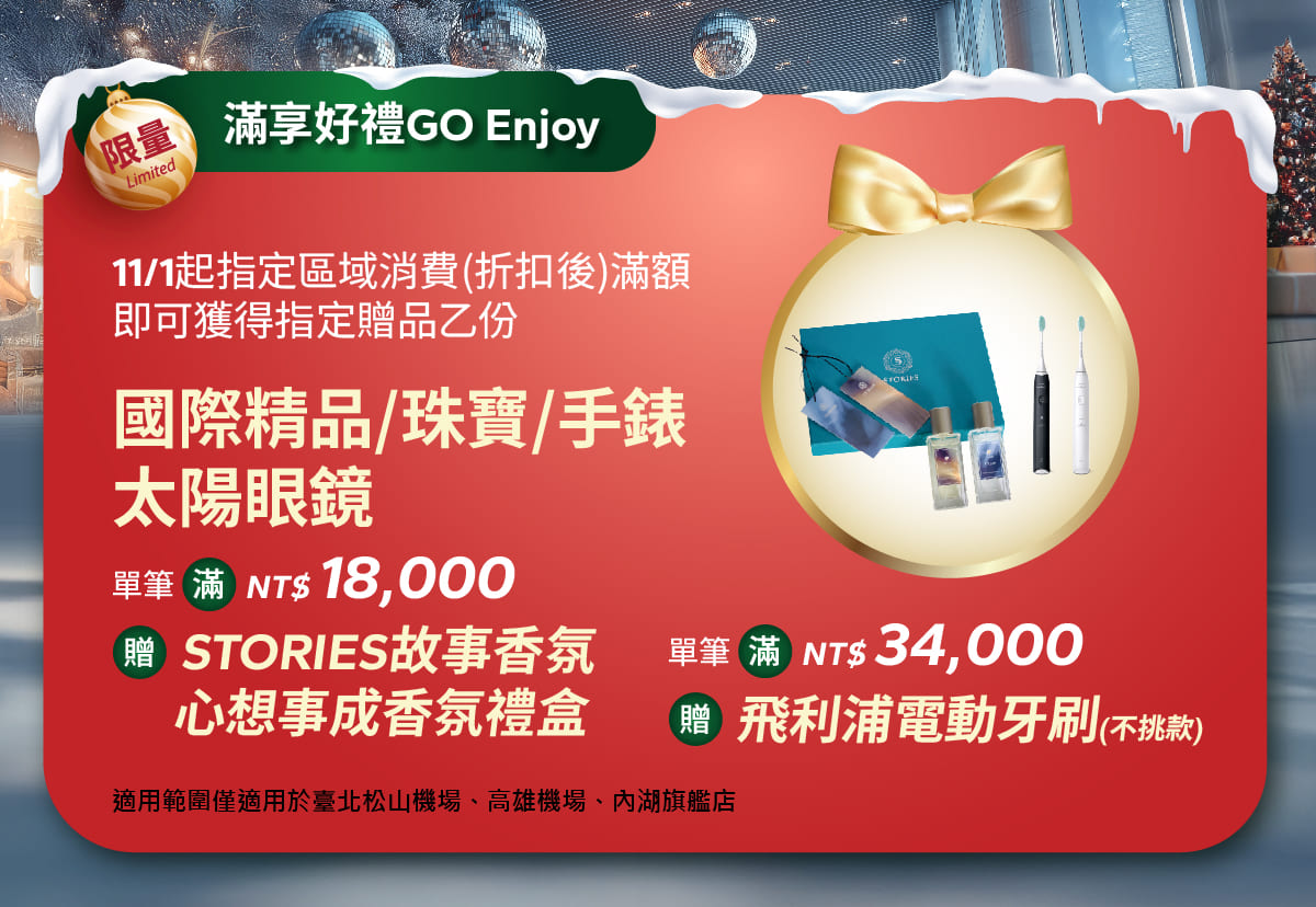 ※適用範圍僅適用於臺北松山機場、高雄機場、內湖旗艦店