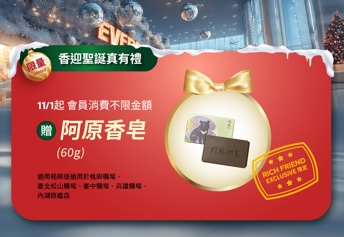 11/01起 會員消費不限金額 贈 阿原香皂60g