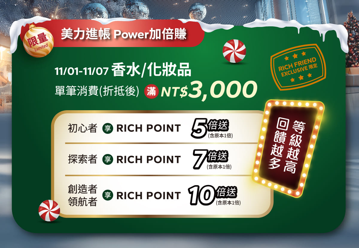 - 初心者 享 RICH POINT 5倍送(含原本1倍)