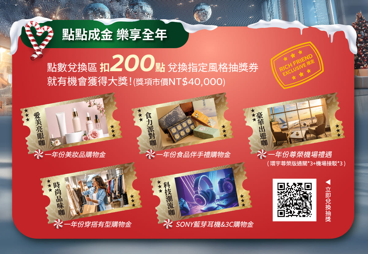點數兌換區 扣200點 兌換指定風格抽獎券